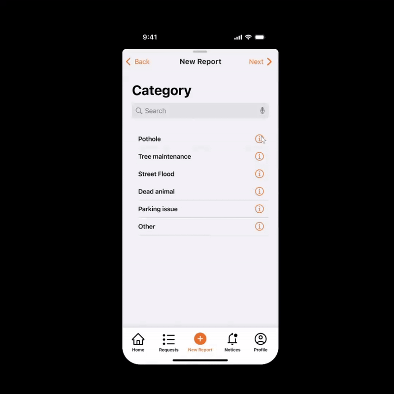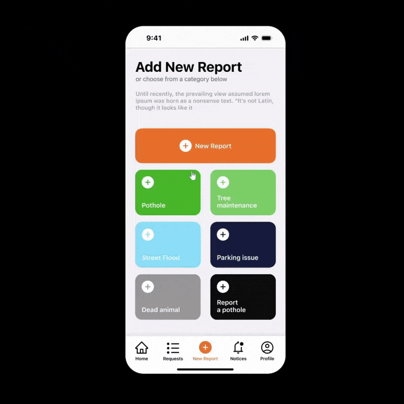 The app prototype focuses on speed and clarity. You open the app. You snap a photo. You tag the location. You submit in seconds. No forms. No friction.